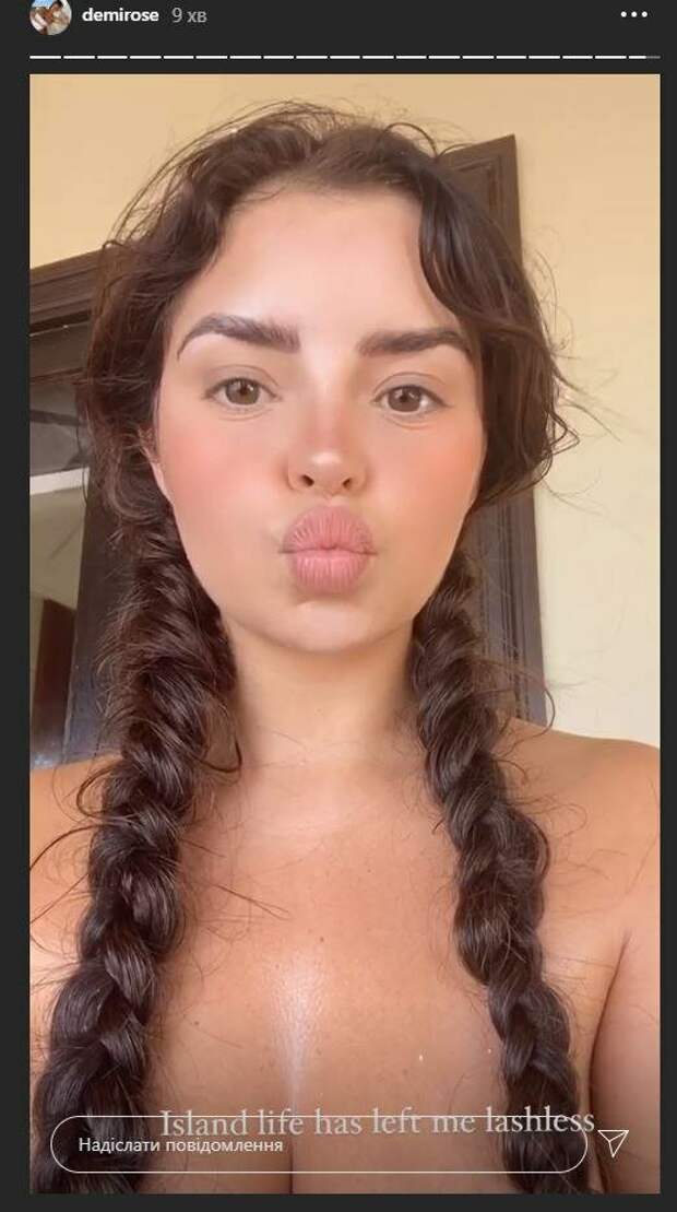 Известная модель Деми Роуз показала себя и рассказала, чего лишилась На фото девушка показала себя крупным планом, демонстрируя свою природну красу и косы, которые заплела. Звезда сделал губы уточкой, а снимала себя на телефон. Волосы лежали прямо на бюсте красотки, который оказался не закрыт бельем.