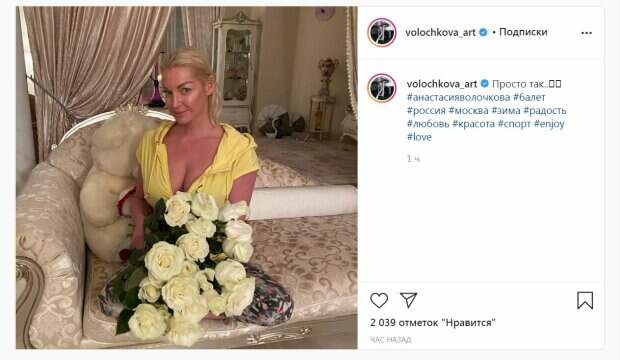 Скандальная российская балерина Анастасия Волочкова предстала в интересном образе со своими любимыми цветами Артистка постоянно будоражит фанатов своими образами, хвастаясь успешной жизнью, сообщает Politeka.net. В этот раз балерина "блистала" дома. Соответствующий снимок балерина опубликовала в своем Инстаграм.