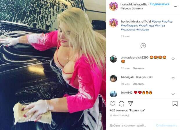Украинская 25-летняя модель плюс-сайз Инна Горячковская взбудоражила новым откровенным фото Как передает Рoliteka.net, звезда опубликовала свежий снимок в своем микроблоге в Инстаграм, на котором предстала в розовом наряде, изюминкой которого, безусловно, стало смелое декольте. Так, намокшая блондинка, вся в пене, распласталась на капоте серого авто, умело орудуя взмыленной мочалкой.