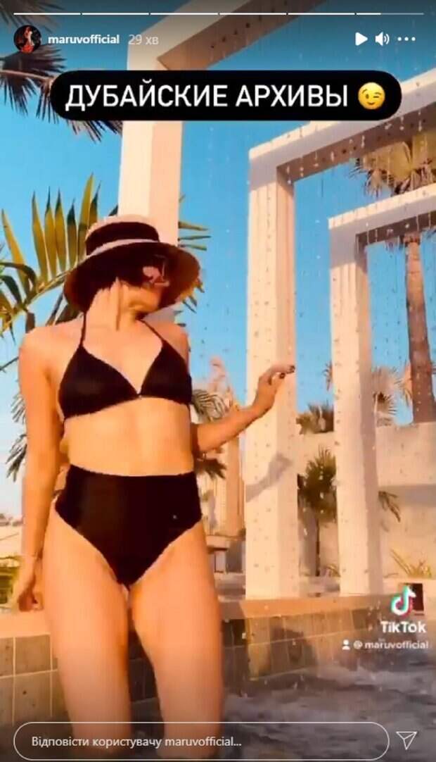 Известная певица MARUV подразнила поклонников идеальными изгибами и шальными танцами Как сообщает Politeka.net певица MARUV показала в сторис на Инстаграм шальные танцы в бассейне, а по подписи становится понятным, что шоудива находилась во время съемок в Дубае. Певица соблазнительно прогибалась, приседала и двигалась весьма откровенно, завораживая своим танцами.