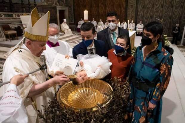 Папа римский Франциск в воскресенье крестил семерых мальчиков и девять девочек в Сикстинской капелле в Ватикане. Об этом сообщает агентство Associated Press. Все присутствовавшие на церемонии носили маски, за исключением самого папы римского, а также младенцев и их маленьких братьев и сестер. Традиция преподавать таинство крещения детям сотрудников Святого Престола зародилась при папе Римском Иоанне Павле II в 1982 году.