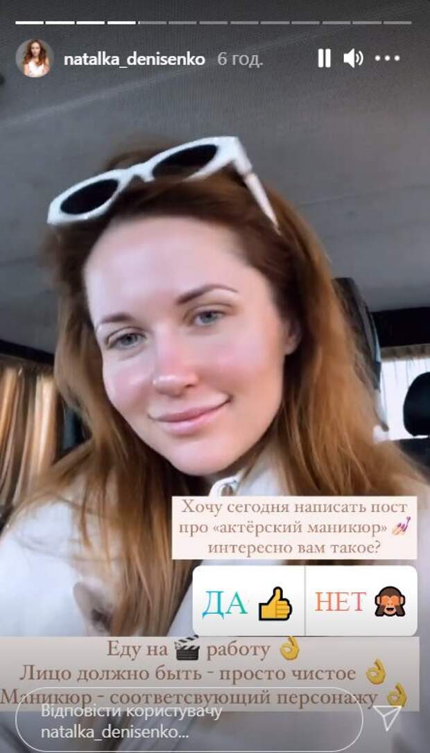 Известная украинская актриса Наталья Денисенко, звезда сериала "Крепостная", показала, как едет на работу без грамма макияжа и прически Как пишет Politeka.net, Наталья Денисенко, которая известна по ролям в театральных постановках и кино, активно ведет социальные сети. Девушка успела собрать сотни тысяч украинцев в Инстаграм, где постоянно радует фанатов новым контентом.