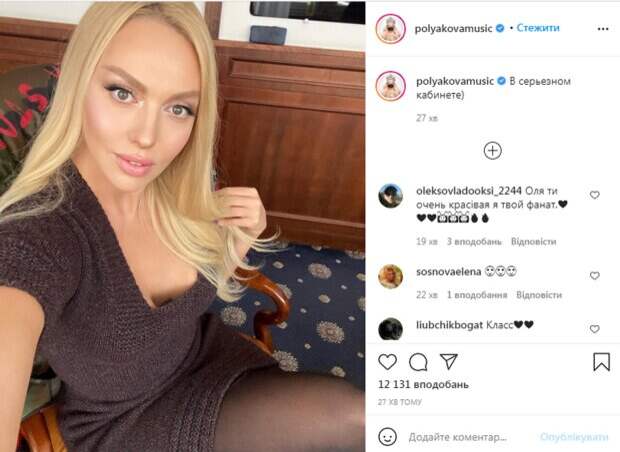 Дополнила свой образ Полякова нежным макияжем в пастельных оттенках. Где именно находится артистка и по какому поводу - она не написала, но намекнула, что встреча официальная. "В серьезном кабинете", - написала она. В комментариях фолловеры певицы высказали свои предположения по поводу того, где она находится. Они были самыми разнообразными - от туалета до кабинета президента Украины. "В уборной что ли?", "Оля, ты очень красивая, я твой фанат", "Как океан, глубокие и безграничные", "Почему одета...", "Походу из-за Тины привлекли к ответственности", "На колени", "У президента?" - пишут в комментариях. Как известно, недавно вокруг Оли Поляковой развернулся скандал из-за того, что она назвала певицу Тину Кароль "плакальщицы на похоронах". Напомним, обольстительная Полякова открыла халатик, взбудоражив признанием: "Я всегда получаю удовольствие от..." Как сообщала Politeka, Полякова в новом лифчике покрутилась перед зеркалом и похвасталась дарами: "как хорошо сидит, а?" Также Politeka писала, что Полякова в узких платьях показала топ самых дерзких образов, ничего не скрыто: "статуэтка вы, Оля"