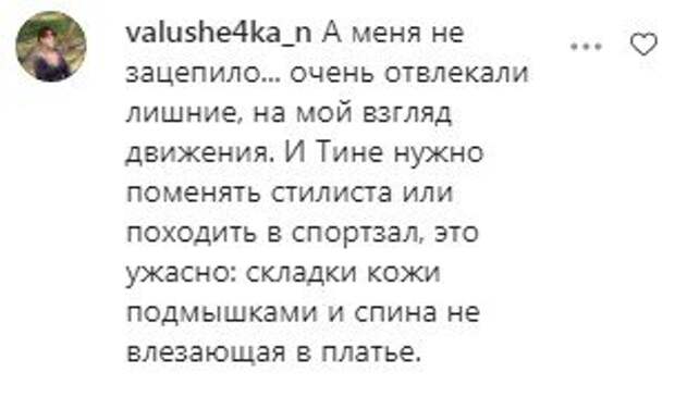 Внешний вид вызвал бурные споры в сети. Пока одни восхищаются исполнительницей, другие упрекают ее из-за якобы лишнего веса. «Тине нужно поменять стилиста или походить в спортзал, это ужасно: складки кожи подмышками и спина, не влезающая в платье», «Тине Кароль пора менять стиль одежды...», - пишут в комментариях. Отметим, за один выпуск шоу Кароль покрасовалась еще и в другом наряде. Звезда позировала на паркете в зеленом платье на бретельках и с высоким разрезом от David Koma – грузинского модельера из Великобритании. Наряд Тина дополнила босоножками на высоких каблуках, несколькими золотыми браслетами на ногах, объемной укладкой и макияжем без красной помады на лице, выбрав вместо нее помаду нюдового оттенка. В ушах артистки также сверкали золотые серьги. Напомним, Кароль обтянулась кожей и поразила всех на "Аллее звезд" в Киеве. А еще Politeka писала, что Кароль удивила фигурой в слишком тесном кожаном платье с декольте. Также Politeka сообщала, что Кароль превратилась в дерзкую соблазнительницу в платье с молнией на груди.