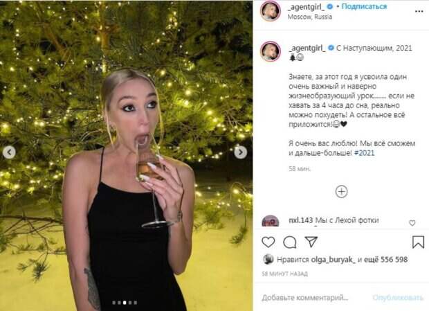 Блогер и ведущая шоу "Орел и решка" Настя Ивлеева знает толк в новогодних развлечениях Неожиданные кадры жена рэпера Элджея опубликовала в своем Instagram. Так, популярная телеведущая решила рассказать, чему научилась в 2020 году, и сопроводила публикацию курьезными снимками. На первых снимках Настя Ивлеева элегантно позирует с бокалом шампанского в руках, а на следующих - начинается "хаос".