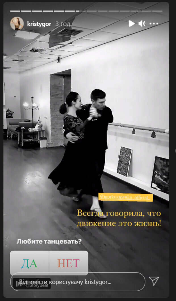 И с кем я сегодня? И что я делаю сегодня? Я танцую танго!», - отметила Кристина, снимая победителя «Танців з зірками» Игоря Кузьменко. Как известно, Кузьменко несколько раз участвовал в шоу, победив в паре с Натальей Могилевской. Также его ставили в пару со Славой Каминской, но певица получила травму и преждевременно покинула шоу. «Пришла встряхнуть стариной, и всем очень советую попасть хоть на одно занятие с Игорем!», - написала Горняк, назвав его лучшим танцором. Далее Кристина опубликовала несколько видео страстного танго. Красотка кружилась в паре с танцором, похоже, совсем забыв о муже. Кстати, сам Владимир Остапчук, как известно, тоже принимал участие в танцевальном шоу в паре с Илоной Гвоздевой. Отметим, что Кристина Горняк и Владимир Остапчук поженились осенью 2020 года. До этого они встречались год. Как раз в то время, как телеведущий разводился со своей женой. Напомним, что новая жена выдала правду о других девушках Остапчука, после свадьбы все изменилось: "У него есть...". Как сообщала Politeka, Остапчук рассказал о неприличных предложениях от богачек: "И не раз...". Также Politeka писала, что жена Остапчука показала, какой симпатичной блондинкой была до встречи с ним: "Я и Джек".