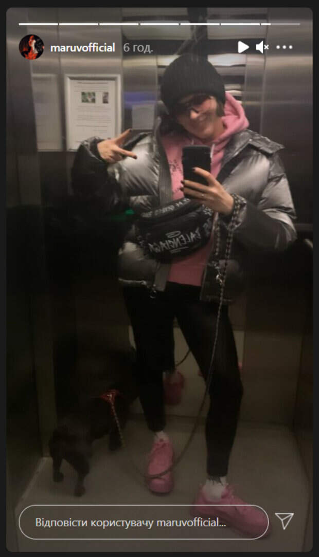 Популярная украинская певица Анна Корсун, известная под псевдонимом MARUV, показала, как выглядит в обычной жизни Как передает Politeka.net, у себя в Инстаграм красотка опубликовала свежие фото и видео. Певица вышла на прогулку со своей собакой Изольдой. MARUV сфотографировалась в лифте, засветив свой повседневный лук.
