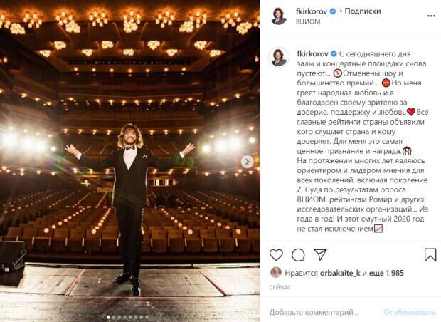 «Меня греет народная любовь и я благодарен своему зрителю за доверие, поддержку и любовь. Все главные рейтинги страны объявили, кого слушает страна и кому доверяет. Для меня это самая ценное признание и награда», - подписал фото артист, добавив рейтинги, в которых он фигурирует на первых местах. Как стало известно из свежих соцопросов, Киркоров стал лидером мнения для поколения Z (людей, родившихся в 2000-2006 годах). Он возглавил рейтинг звезд, которым доверяют больше всего. Кроме этого, в топ-5 вошли такие звезды как Ксения Собчак и Ольга Бузова. В комментариях поп-короля поздравили с успехом. «Наш любимый артист и человек! В наших сердцах Вы всегда первый! Всегда самый-самый! Абсолютно не удивительно, что и другие люди тоже понимают это!», «Поздравляю вас Филипп Бедросович!», «Вы Умничка Филипп!», «Филипп! Будем надеяться, что пандемия скоро закончится!», «Вы легенда!», «Среди мужчин-исполнителей только вы лучший», - пишут люди. Напомним, что Киркоров с любовником Бузовой похвастались роскошью и громко опозорились: "Колхоз не спрячешь даже за...". Как сообщала Politeka, Киркоров показал домашний завтрак красавицы-дочки, вид впечатляет: «Видно, что не бедствуете». Также Politeka писала, что расфуфыренный Киркоров показал, как наслаждается пафосной жизнью и поплатился: "Стыдно на это смотреть".