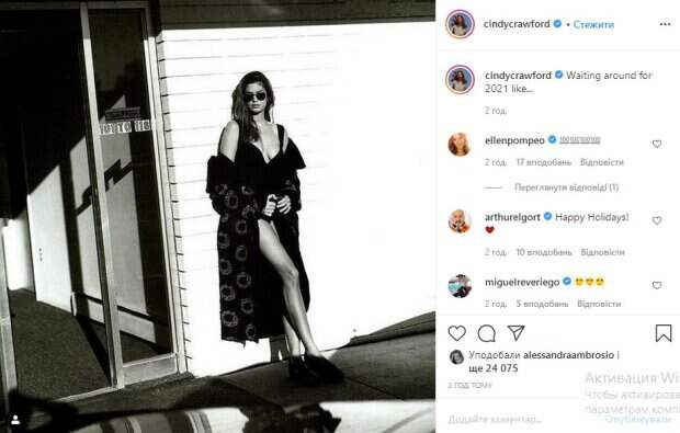 Супермодель из 90-х Синди Кроуфорд довела до безумия поклонников, посветив безупречными ногами в боди Как рассказывает Politeka, фотографией красотка поделилась у себя на странице в Instagram. «В ожидании 2021 года, вроде-как…» - коротко говорится в сообщении. Уточним, что на фотографии Кроуфорд позирует, приспустив халат и посветив безупречными формами в боди.