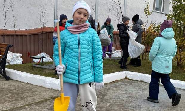 Первоклашки Обдорский гимназии высадили березы во дворе школы