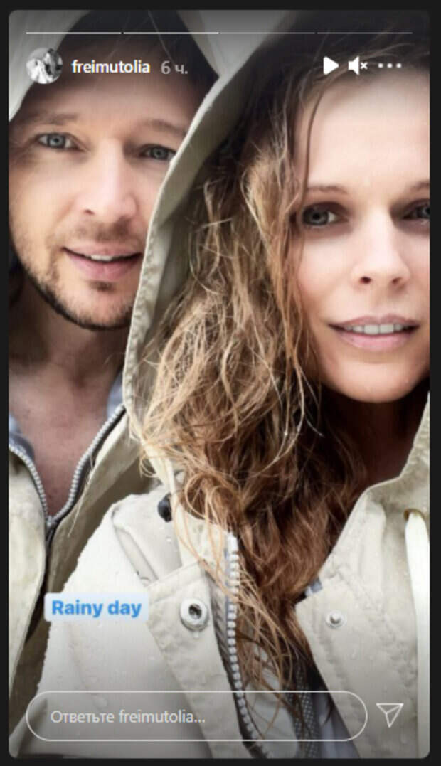 Все трое были в плащах, так как лил сильный дождь. Но, судя по улыбкам на лицах, разбушевавшаяся непогода никак не отразилась на настроении семейства. Счастливая Ольга присела рядом с дочкой, обняла ее за плечи и прижала к себе. При этом намокшая телеведущая, с растрепанными волосами, закрыла глаза, наслаждаясь моментом и стихией. Сын Ольги стоял чуть поодаль и, казалось, растерянно поднял ручки вверх, глядя, как капли ударяются о воду. Сложно не заметить, что мальчик растет копией своего отца - генерального продюсера "Нового канала" Владимира Локотко. К слову, телеведущая очень редко показывает в соцсети лица своих младших детей: либо же она отворачивает их от камеры, либо, они в костюмах или масках. Скорее всего, это был действительно особый момент, раз Фреймут решилась показать своих крох во всей красе. Кроме того, Ольга выставила новый "сториз", на котором позировала рядом с мужем. Они оба были в дождевиках, натянув капюшоны, и пристально смотрели в камеру. Пользователи кинулись комментировать увиденное. Люди сразу же обратили внимание, что Фреймут показала всех, кроме старшей дочери - 14-летней Златы. Девочка, очевидно, не отдыхает вместе со своей семьей. "Кого еще там не было? !