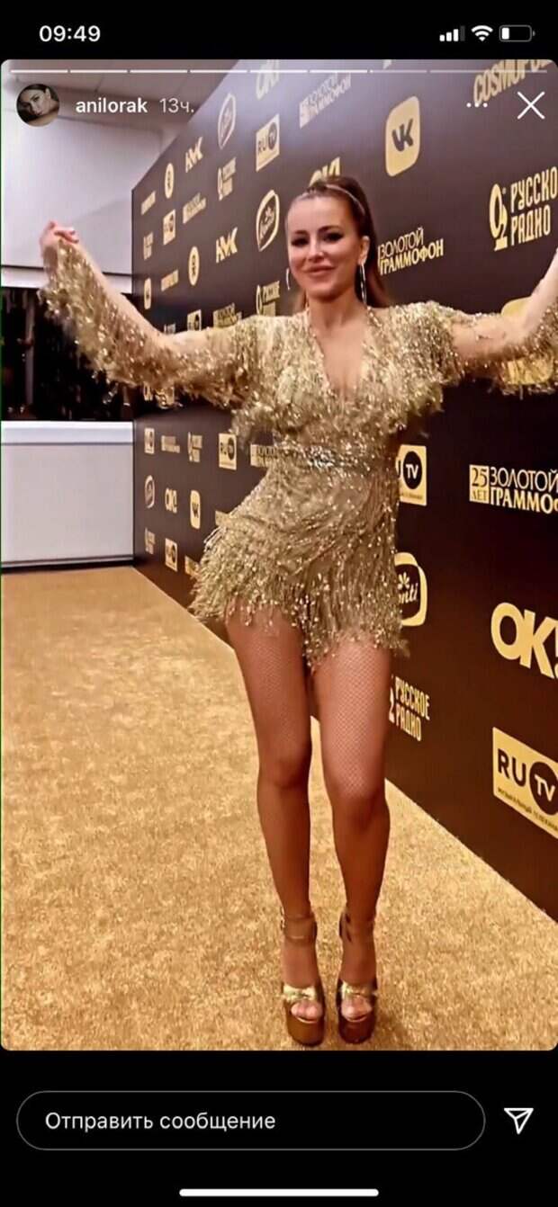 Известная певица Ани Лорак показала себя в необычном наряде на мероприятии На фото Каролина, так настоящее имя певицы, показала себя в блестящем платье с бахромой. Наряд у красотки был телесного цвета, а образ дополнила Лорак каблуками. Певица собрала волосы в хвост, а руки подняла вверх, давая насладиться приличным декольте.