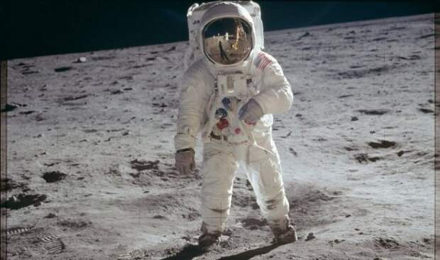 Художник по визуальным эффектам Майкл Рейнджер преобразил знаменитое фото с поверхности Луны с Баззом Олдрином в главной роли. Он «развернул» изображение и показал, что же в тот момент видел сам астронавт. В этом ему помогло отражение в зеркальном покрытии шлема скафандра Базза.