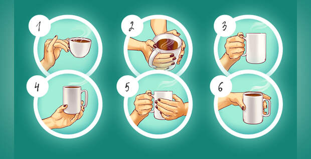 Все мы индивидуальны, но, несмотря на непохожесть, есть общие черты, объединяющие людей. Язык тела, порой, может сказать нам намного больше о человеке, чем он сам. Данный психологический тест прольет свет на скрытые черты характера, оценивая вашу манеру держать кружку. Внимательно посмотрите на картинку и выберите ту, которая подходит к вашей ситуации.