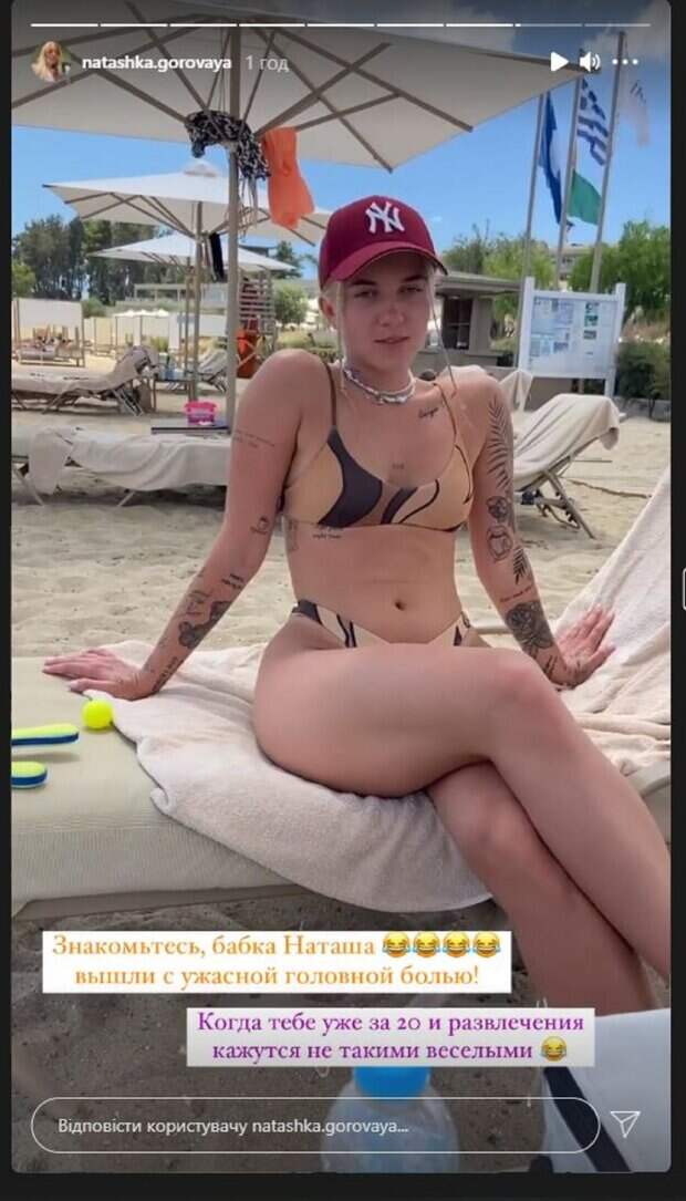 Сейчас красотка активно ведет социальные сети, где делится самым интересным. На новом фото Наташа позировала в рубашке, бейсболке и купальнике, позируя перед зеркалом. Красотка улыбалась, демонстрируя роскошную фигуру. "Ну а теперь уверенно и красиво на пляж", - написала Наташа. На втором сторис Горовая была не такой задорной. Красотка с недовольным лицом сидела на пляже. Как можно понять, у девушки болела голова. "Знакомьтесь, бабка Наташа. Вышли с ужасной головной болью. Когда тебе уже за 20 и развлечения кажутся не такими веселыми", - было написано под сторис. "И спроси, цепляются там три подушки", - спросила Ирина Горовая у дочери. "В смысле, мам, нет, это плохо. Три подушки - это ты будешь биться страшно головой. Когда три отдельно, ты будешь барахтаться, мы так когда-то катались. Мы вышли с ужасной головной болью", - рассказала Наташа. Напомним, приемная дочь Потапа удивила эффектным преображением, есть чему радоваться А еще Politeka писала, что приемная дочь Потапа в крошечном купальнике померялась формами со своей молодой мамой Также Politeka сообщала, что бывшая жена Потапа Ирина Горовая в мини-бикини впечатлила формами в бассейне