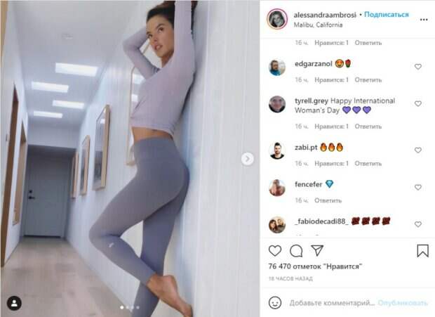 Известная модель Алессандра Амбросио, звезда Victoria’s Secret, восхитила стройной фигурой после тренировок Легендарная модель имеет свои секреты красоты, которые не раз раскрывала у себя в Инстаграм. А недавно Алессандра в очередной раз также покорила образом в спортивном лавандовом костюме, ведь показала идеально стройную и ухоженную фигуру.