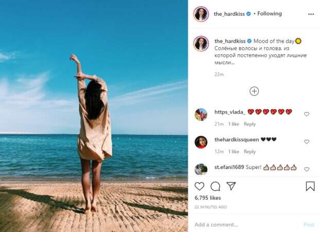 Певица вышла на песчаный пляж ранним утром, чтобы насладиться морским бризом и приятной погодой теплой страны. Она позировала к камере спиной, вытянув руки высоко вверх, красотка сверкнула босыми стройными ногами, но все остальное спрятала под одеждой. "Настроение дня. Солёные волосы и голова, из которой постепенно уходят лишние мысли...", - поделилась Юлия эмоциями в описании к фото. Стоит отметить, что она заняла второе место в последнем сезоне "Танців з зірками", уступив Санте Димопулос. Пользователи соцсети пришли в восторг от вида отдыхающей Саниной и засыпали ее приятными комментариями: "Надеюсь это отдых перед Голосом"; "Солнечная девочка