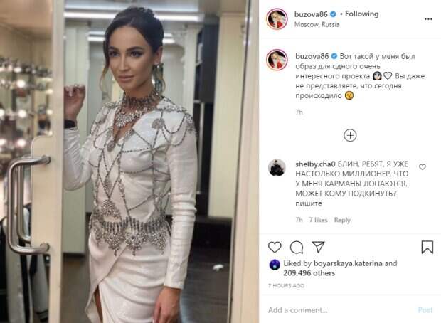 Российская телеведущая и певица Ольга Бузова показала необычный образ для нового проекта Она выложила на своей странице в социальной сети "Инстаграм" фото, на котором предстала в белом платье экстравагантного фасона с длинными рукавами, передает Politeka.net. Изюминкой наряда стала лоснящаяся ткань, откровенный вырез подола спереди, а также серебристая сеточка, украсившая Ольгу Бузову от шеи до пояса.