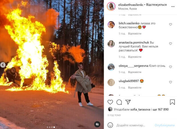 У себя в Инстаграм Василенко опубликовала фото и видео из клипа, в котором она снялась. На кадрах девушка предстала с окровавленным лицом. Оказалось, что по сюжету клипа девушка с парнем разбиваются на автомобиле. Машина загорается, а парень уносит окровавленную Лизу от машины. «ДРУЗЬЯ! Премьера клипа @timursorokin «Рваные форсы»! Давайте все посмотрим, это очень круто», - подписала пост Василенко. В комментариях девушке оставили массу восторженных отзывов. Поклонникам очень понравился клип и то, как реалистично Лиза сыграла жертву аварии. «Класс круто», «Это шикарно», «Клип такой качественный», «Нереальные», «Это бесподобно!!! Снимать дубль, зная о том, что за спиной сильное пламя!», «Вы лучший Каллаб, Вам нельзя расставаться!», - пишут пользователи сети. Напомним, что жуткая участь настигла юную звезду сериала "Школа" в Москве, вскрылись подробности: "Помню, что он сверху…". Как сообщала Politeka, скандальная звезда "Школы" Лиза Василенко с расстегнутым топом прогулялась по Москве: "Бабы завидуют". Также Politeka писала, что оскандалившаяся звезда «Школы» Василенко с открытым ртом показала, как теперь зарабатывает в России: вульгарное фото.