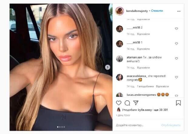 Девушка на разных снимках была с разным цветом волос. Об этом пишет Politeka.net со ссылкой на фан-страничку знаменитости. "Кендалл, пожалуйста, покрасьте волосы," - подписал администратор группы снимок. "Она запостила", "Поздравляю, Кендалл понравилось и опубликовала репост!", "закрепить, потому что она сообщила," "блондинка выглядит на ней отлично, я никогда не испытывал ненависти, когда она делала это для подиума", "Настоящий был здесь до Кендалл", "Какое приложение, это вау", "давай встряхни свое тело, детка", "Можете ли вы сказать нам, какое приложение вы использовали, спросили несколько человек?", "Ты за хлебом вышла?", "Это герб Украины". Сообщалось, что популярная американская модель и бизнесвумен Кортни Кардашьян соблазнила безупречной фигурой, распахнув пиджак. «Я так рада, что наш интернет-магазин наконец-то открылся…» - говорится в сообщении. Уточним, что на фотографии Кортни позирует в элегантном белоснежном костюме, который решила распахнуть и показав безупречную фигуру. В руках девушка кокетливо держит туфлю, которую сняла с ноги. Напомним, Кендалл Дженнер с трудом прикрыла бюст, надев слишком маленький купальник А еще Politeka писала, что Кортни Кардашьян устроила ночной заплыв с подругой в тесном купальнике Также Politeka сообщала, что пышногрудая Кайли Дженнер прошлась по коридору, тряся "бомбочками" в леопарде