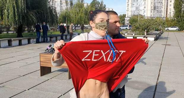 На избирательном участке, где голосовал президент Украины Владимир Зеленский с первой леди Еленой Зеленской, участница Femen провела акцию. Когда президент с женой шли к участку, выбежала девушка. Задрала юбку красного цвета. На изнанке юбки было написано Zexist. Девушка была без нижнего белья. Волосы на интимной зоне у нее были выкрашены в зеленый цвет.
