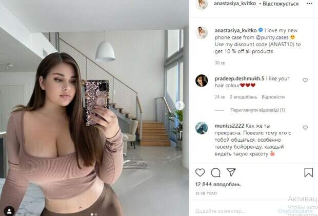 Российская модель Анастасия Квитко, которую сравнивают с американской иконой стиля Ким Кардашьян, впечатлила размером «дынек» в топе с декольте Как рассказывает Politeka, фотографией знаменитость решила поделиться у себя на странице в Instagram. «Мне так нравится мой телефон в этом чехле», - коротко говорится в сообщении.