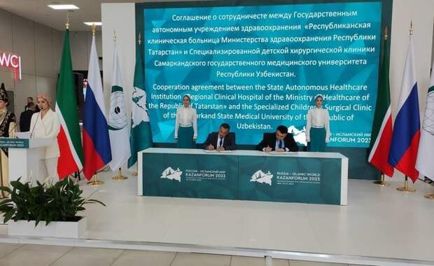 На площадке Международного экономического форуме «Россия — Исламский мир: KazanForum» представители РКБ Татарстана подписали соглашения о сотрудничестве с образовательным и медицинским учреждениями Узбекистана. Как сообщает пресс-служба больницы, договор был подписан со Специализированной детской хирургической клиникой Самаркандского государственного медицинского университета и Ташкентским педиатрическим медицинским институтом Узбекистана.