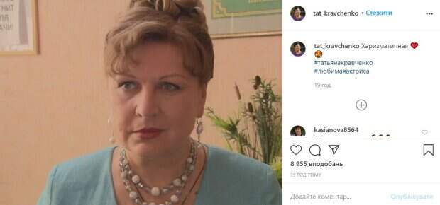 net. Новая фотография в социальной сети Инстаграм – лучшее тому подтверждение. На снимке, а это, скорее всего, стоп-кандр, Кравченко в голубом платье или жакете с бусами. В ушах у нее крупные серьги. Женщина выглядит серьезной и сосредоточенной. «Харизматичная», – коротко подписала снимок звезда. Фотография собрала почти девять тысяч лайков и более сотни комментариев. «Обожаем вас всей семьёй от мала до велика!!!!! Дочке 11 лет, сваты смотрела раз 7 все сезоны, когда видит вас в других фильмах, говорит- Баба Валя играет!!! 💋💋💋🌺🌺🌺😘😘😘», «Наша любимочка🥰🙌👏👏👏👏👍👍👍👍🌹🌹🌹», «Любимочка наша!😍😍😍🌹🌹🌹 Радуйте нас новыми ролями!💖💖💖», «Тоже люблю, но больше в сватах, там Вы совсем другая», «Прелесть! Обожаю», – пишут пользователи. Ранее мы рассказывали, что звезда «Сватов» показала свежую себя и рассказала об актерах. На фото Татьяна позировала в блузке с белыми узорами, а волосы оставила распущенными. Образ Кравченко дополнила очками, а сама улыбалась на камеру. Звезда сложила руки и стояла довольно близко, демонстрируя свежий мейкап. Напомним, лучезарная Валюха из «Сватов» пленила образом в украинской вышиванке. Также Politeka сообщала, что Добронравов внезапно унизил Валюху из "Сватов", такое невозможно забыть. А еще Politeka писала, что сияющая Валюха из «Сватов» показала свое настоящее лицо, эффектное фото.
