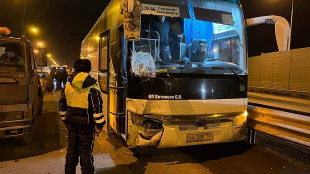 На Полевском тракте пассажирский автобус столкнулся с тремя впереди стоящими машинами. По предварительной информации, 60-летний водитель почувствовал себя плохо и потерял управление. Авария произошла накануне вечером на Полевском тракте.