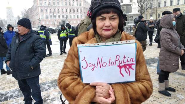 Сегодня в центре Киева прошла акция «Скажи Путину нет!», организованная близким к Петру Порошенко «Движением сопротивления капитуляции», передает корреспондент «ПолитНавигатора». На Михайловской площади собралось несколько сотен человек, которые держали огромный флаг Украины. Одни из участников акции нарисовал на лежащем на земле полотне слоган «Say NO to Putin».