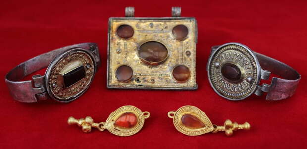 В Крыму при раскопках древнего могильника Опушки археологи из Крымского федерального университета (КФУ) имени Вернадского обнаружили коллекцию украшений III века. Три браслета, серьги и два нагрудных украшения в сердоликовом стиле хорошо сохранились и, по данным ученных могли принадлежать высокопоставленным особам, передает корреспондент «ПолитНавигатора».