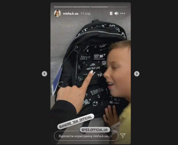 Так, в этот раз актриса решила поделиться с фанатами, что заказала своему 9-летнему сыну Платону рюкзак от известного дизайнера Андре Тана. "Вы только посмотрите, какой крутой рюкзак нам пришел от Андре Тана. Уууу... Просто вообще бомбический. Там еще есть в бежевом цвете. Андре Тан, ты просто бесконечно талантлив. Это самый крутой рюкзак, который может быть у школьника и не только. Класс, спасибо", - с восхищением сказала Мишина. Как видим, рюкзак маленькому Платону очень понравился. Заметим, что недавно Андре Тан стал холостяком. Он развелся со своей женой Алиной Харечко. По словам дизайнера, причиной развода стали ссоры из-за личного бизнеса Алины (она запустила собственный бренд одежды Home Wings). Ранее Politeka писала, что сын "Холостячки" Мишиной получил травму: что случилось с маленьким Платоном. Напомним, что "Холостячку "Мишину в компании Притули довели до слез:" тут не что попало..." A еще Politeka сообщала, что ведущий " Холостячки "Решетник высказался о неожиданном примирении Мишиной и Эллерта:" верю..."