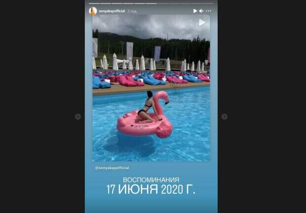 В новых сторис девушка поделилась воспоминанием о своем отдыхе в Буковеле, сообщает Politeka.net. На кадрах Соня Кей в черном купальнике оседлала надувной круг в форме фламинго и плавала на нем в бассейне. Девушка изящно прогнулась, выпятив пятую точку. Так певица проводила время ровно год назад. Тогда красотка только сыграла свадьбу с Олегом Петровым и наслаждалась своим медовым месяцем. «Сладкого Вам медового месяца», «В медовый месяц молодым желаю провести время с пользой, удовольствием и веселым настроением. Пусть ваш медовый месяц вдохновит и наполнит вас новыми силами, бодростью, энергией, крепким здоровьем, яркими впечатлениями и хорошими эмоциями», - желали Соне поклонники. А вот у телеведущей Леси Никитюк с подобным надувным кругом случилась совершенно другая история. Во время отдыха в Турции она записала видео видео, на котором попыталась запрыгнуть в бассейн на надувного единорога. Но у Леси ничего не выходило, после чего Никитюк начала психовать и бить единорога об воду. Для съемок красотка надела черное бикини и стильные очки. Напомним, племянница Ротару избавилась от белья и показала, чем ее наградила природа. А еще Politeka писала, что племянница Ротару в обтягивающем костюме заставила бабушку краснеть. Также Politeka сообщала, племянница Софии Ротару в эффектной позе показала свои формы в бикини: "Сильно".