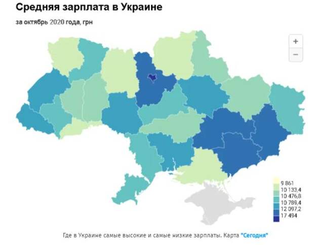 гривен), разница между этими регионами в зарплате составила свыше 7 тысяч. Первая тройка городов и областей с самыми высокими зарплатами выглядит следующим образом: г. Киев – 17 253 гривны; Донецкая область – 13 544 гривны; Киевская область – 12 905 гривен. Самые низкие зарплаты отмечены в: Волынской области – 9 861 гривны; Черновицкой – 9 926 гривен; Черниговской – 9 966 гривен. Напомним, обещание правительства повысить минимальную зарплату в следующем году - оказалось под большим вопросом. Как известно, на днях Кабмин принял решение о переносе роста минимальной зарплаты до 6,5 тыс. гривен с июля на декабрь 2021 - благодаря этому, по мнению членов правительства, можно сэкономить на зарплатах бюджетников. Таким образом, те, кто получают меньше 6,5 тыс. гривен, теряют две с половиной тысячи. Кроме того, отменено обещанное повышение зарплат учителям с начала 2021 года. Минимальный оклад педагога должен был составлять как минимум 2,5 прожиточных минимумов (6810 грн), без повышения - всего лишь 4455 грн. Напомним, без зарплат рискуют остаться миллионы украинцев, деньги в казне закончились: "Ситуация не просто плохая..." Как сообщала Politeka, новые зарплаты обернутся ударом, украинцам придется платить повышенные налоги Также Politeka писала средняя зарплата побила рекорд, названы сферы, где больше всего платят