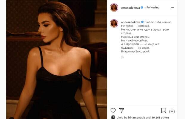 Она забросила ногу на ногу и сверкнула на фото обнаженной коленкой. Так и хочется узнать, куда в это время смотрит муж исполнительницы Янис. В описании Анна Седокова рассказала о своих чувствах стихами музыканта Владимира Высоцкого. "Люблю тебя сейчас Не тайно — напоказ. Не «после» и не «до» В лучах твоих сгораю. Навзрыд или смеясь, Но я люблю сейчас, А в прошлом — не хочу, А в будущем — не знаю". Ранее Анна Седокова разместила в соцсети кадры бесстыжей фотосессии в центре Москвы. Певица надела черный брючный костюм с блестящими лацканами, галстук-бабочку, а также контрастную белую шляпу, волосы она собрала в хвост. Анна Седокова также сделала себе вызывающий макияжем с красной губной помадой, который лишь подчеркнул от природы красивые черты лица. Можно заметить на снимках, что звезда ничего не надела под пиджак, даже бюстгальтер. В таком облике Седокова прогулялась по городу при свете солнца, сверкая не только блестками, но и внушительным бюстом. Она позировала на камеру с невозмутимым выражением лица на фоне московских видов. Напомним, что Седокова опозорилась вместе с любовником прямо на съемках. А еще Politeka писала, что Седокова блеснула похудевшей фигурой после диеты. Также Politeka сообщала, что Седокову лишили возможности увидеть собственную дочь, причина поражает.