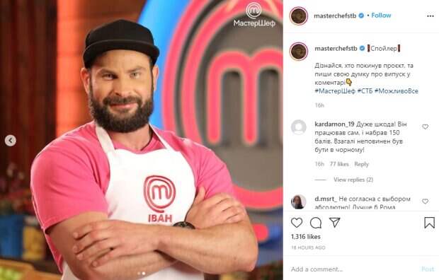При этом лишь лидеры команд знали рецепты, а основные ингредиенты судьи продавали за деньги. Каждое успешно выполненное блюда оценивали в 20 гривен. Вдобавок, командамы обязали выставить по одному участнику на биржу труда в обмен на 40 гривен с возможностью выкупа за заработанные деньги. В итоге черные фартуки надели оставили Александр Горчаков и Роман Петрушенко. В следующем испытании кулинарам пришлось работать в парах. Им представили большую доску с баллами, которые выдавали за правильные отеты. Больше всего баллов заработала пара Ирины Раковчен и Яны Балог. А вот Иван Козыр, Дмитрий Балита и Марина Шмалько дали мало правильных ответов и получили черные фартуки. В финальном конкурсе "штрафникам" показали по фигурке, которые им пришлось воплотить в блюде. Роману Петрушенко достался лесоруб, Саше Горчакову - грузчик, Ивану Козыру – медбрат, Дмитрию Балите – водитель экскаватора, Марине Шмалько – уборщик. По решению судей проект в восьмом выпуске покинул Иван Козыр. Многие зрители пришли к выводу, что его выгнали незаслуженно, о чем и написали в комментариях: "Очень жаль! Он работал сам, и набрал 150 баллов. Вообще не должен был быть в черном!"; "Не согласна с выбором абсолютно! Лучше б Рома ушёл"; "Его просто слили из-за странных правил конкурса... Вообще был левый чёрный