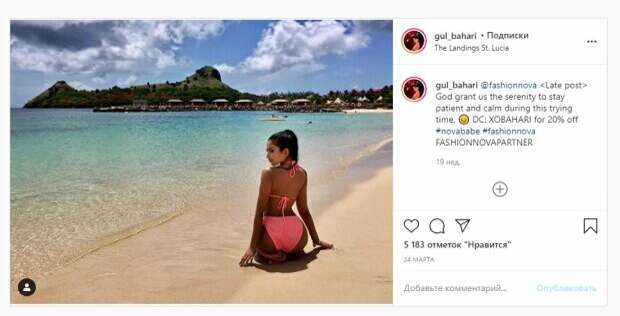 Известная модель Гюль Бахари, которую называют турецкой Кардашьян, показала себя на отдыхе На фото красотка показала себя в розовом купальнике: больших трусиках и миниатюрном лифчике. Звезда сидела спиной к камере и демонстрировала большую пятую точку. Гюль была на пляже и находилась у самой воды. Как можно заметить, девушка отдыхала в Сент-Люсия, остров в Карибском море.