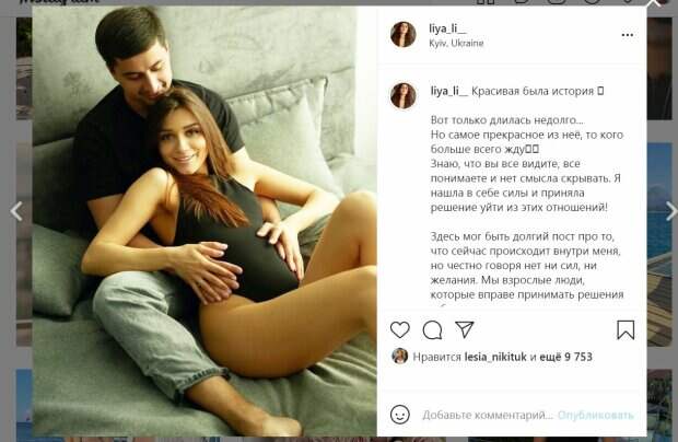 Только спустя некоторое время вопрос со свадьбой отпал, ведь, певица рассказала, что приняла решение бросить жениха. По словам подруги Никитюк, было непросто уйти от бывшего, тем более, что она еще находится в положении. "Я устала пытаться что-то исправить, устала быть не такой, ходить на иголках и все равно не такая", - раскрыла причину своего поступка Лия. По словам артистки, она теперь хочет жить в позитиве и растить малыша сама, "исключая из своей жизни - токсичных людей". Ли рассказала, что не собирается терпеть плохого отношения к себе ради ребенка, как делают некоторые женщины Позже певица сделала новый пост. "Я давно уже все отпустила, переболела и приняла решение поделиться с Вами, так как было много вопросов и каждый вопрос возвращал обратно. Но сегодня я выдохнула и свободно дышу!", - написала она. Напомним, Леся Никитюк попала под удар ледяной стихии в разгар лета Как сообщала Politeka, Никитюк в платье с непристойным разрезом заинтриговала съемкой на улице Также Politeka писала, что Никитюк в необычном платье превратилась в куклу, покорив образом