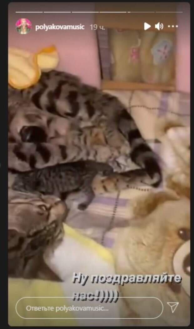 При этом артистка не забывает радовать фанатов в Инстаграм яркими кадрами. В своих новых "сториз" Полякова похвасталась пополнением в семье, передает Politeka.net. "Ну, поздравляйте нас!)))", - говорится в подписи. На кадрах предстала их домашняя любимица - кошка бенгальской породы, у которой родилось два котенка. Оля крупным планом показала малышей, которые увлеченно кушали. Кошка, кстати, появилась в семье Поляковой несколько лет назад. Певица подарила животное младшей дочке Алисе на день рождения. "Алиса заказала кошку-"бенгалку". Так что у нас в доме теперь есть дикая кошка. Это такой ужас, у нас уже есть собачка, которая ходит в туалет везде, кроме улицы. А теперь у нас еще есть котик, который делает то же самое. Такой прекрасный у нас дом", - рассказывала Оля, добавив, что предлагала дочери вместо кошки купить новенький iPhone, но девочка осталась непреклонной. "А когда дочь теперь просит у меня айфон, я говорю: "Играй в игры на своей кошке", - насмешила Полякова. Напомним, что Остапчук на отдыхе обзавелся симпатичной малышкой, жена не против: "Зовут Дуня". Как сообщала Politeka, жена Остапчука запрыгнула на руки к мужу и удивила признанием: "А мы уже решили...". Также Politeka писала, что жена Остапчука в кислотном бикини показала, чем покорила известного ведущего: кадр без фильтров.