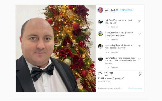 На опубликованном фото Ткач предстал в солидном костюме с бабочкой на фоне новогодней елки. Поклонники остались довольными образом артиста и не скупились на лестные комментарии, а некоторые даже провели параллели с Владимиром Зеленским. "Класненький. И Вас с праздником", "Самый обаятельный красавчик", "На документы? Но, все равно красиво!", "Уважаемый Президент! Верю каждому Вашему слову! Преданный зритель!", "Следующий президент Украины. Вам очень идёт", "Важный такой, при параде", "Что ж ты такой красивый, как Яма", - писали под постом артиста. Не оставил без внимания пост Ткача и его коллега Гарик Бирча: "Юрчик, ты хорошим мальчиком! Что тебе подарил Николай?", - поинтересовался он в комментарии. Напомним, Ткач из «Квартал 95» крепко прижал к себе свой самый дорогой подарок. Как сообщала Politeka, дерзкий Кошевой из "Квартал 95" обидел известного украинца, извинения не помогли. Также Politeka писала, что дерзкий Ткач из «Квартал 95» обвел Потапа вокруг пальца неожиданным фокусом.