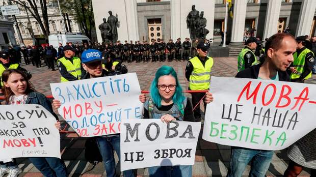 Порошенко закрепил тенденцию законом о полном запрете обучения на русском языке. Если бы идущий во власть актёр из популярного шоу сразу заявил о своей приверженности курсу дерусификации, большинства голосов избирателей он бы не получил. Русские украинцы верили, что выходец с Юго-Востока обязательно отменит принятый предыдущим президентом закон и обязательно защитит их от агрессивных националистов-украинизаторов. “Зе-власть” не только не отменила дерусификацию образования, но и приняла закон о тотальной украинизации всех сфер общественной жизни. Попутно запретив и языки малых народов – такая себе “маскировка”, показывающая якобы справедливость языкового закона. Людей разделили на сорта по языковому признаку. Уровень образования, профессионализм, личные и моральные качества стали не важны. Уверенная болтовня на “мове” заменит всё. А если гражданин относится к разряду “сознательных украинцев” и чтит бандеровцев, мельниковцев и прочую нацистскую нечисть, то карьерный рост у такого “патриота” будет стремительным. А что же остальные? Неужели согласны? Ведь языковый омбудсмен Тарас Кремень предлагает изгонять из страны всех, кто не согласен с политикой принудительной украинизации. И это пока довольно мягкое и корректное предложение от нациста. Уверены, следующим шагом будут “особые зоны”, а если говорить прямо – концентрационные лагеря. Граждан Украины, использующих в быту русский язык – более 60%, а ведь есть ещё и венгерские, болгарские, греческие и многие другие общины. Получается, более, чем две трети населения Украины не считают украинский язык родным, но обязаны подчиниться наглому меньшинству, которое “строит украинскую нацию” без роду-племени. Теперь для поступления на госслужбу все граждане обязаны получить сертификат о владении государственным языком. А те, кто давно занимает посты в бюджетных организациях, обязаны доказать своё свободное владение “мовой” в её абсолютно дикой “новоязовской” версии. На подконтрольной Украине части Луганской области открыто шесть центров сертификации, которые работают крайне медленно: запись на сдачу экзамена проводится в последний день каждого месяца, и никак иначе. Причём, даже тот, кто займёт очередь ровно в полночь, может не попасть на вожделенную сертификацию – много “левых” людей. Знакомые, друзья знакомых, родственники и прочие доверенные лица, которые принесут в центр сертификации мзду в конверте, уже записаны в очередь. Сам экзамен заслуживает особого рассмотрения. Во-первых, все соискатели на получение сертификата обязаны смотреть прямо в камеру. Нельзя скосить взгляд даже случайно: если вам захочется чихнуть, на нос сядет муха или кто-то окликнет во время тестирования — то всё, опрос прерывается и такому человеку сертификат не выдаётся. Сидеть ровно, глаза в камеру, ни малейшего движения глазами. Во-вторых, на 26 вопросов даётся ровно минута на один вопрос. За это время нужно прочитать, понять, ответить “мовой”. Затем нужно десять минут говорить на предложенную тему смотря прямо в камеру. Что это? Допрос в гестапо? Не хватает только яркой лампы в лицо. Получается те, кто с детства разговаривал на “мове”, а это – жители западных областей Украины и семьи националистов, будут гораздо лучше подготовлены к экзамену. Тем более, что обновлённая версия украи