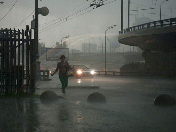 Происшествия Очевидцы сняли на видео надвигающийся на Москву ливень со шквалистым ветром. Сегодня в Москве после нескольких дней жары и зноя прошел мощный тропический ливень с грозой, местами градом, и шквалистый ветер с порывами до 25 м/с. В результате разгула стихии в столице попадало 49 деревьев, а также повреждено 24 автомобиля.
