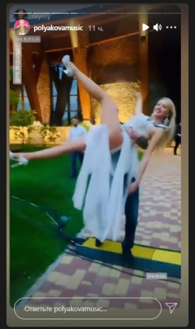 net. Так, Оля, в своем традиционном вызывающем наряде - корсете со шлейфом, расшитом серебристыми блестками, запрыгнула на руки "могучему богатырю", да еще и задрала ножки. Певицу пронесли в такой позе несколько метров. "О, боже...", - восклицал голос за кадром, который снимал происходящее на камеру. "Корабль с мачтой", - так охарактеризовал "композицию" мужчина, который нес Полякову на руках. Кроме того, звезда опубликовала еще одно фото, показав, как расслабляется в гримерке в точно такой же позе, только уже лежа на диване. "И никакого фотошопа, главное