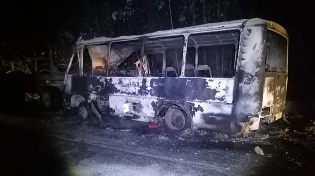 Водителя в грузовике в момент столкновения не было. В полиции отмечают, что фары Урала, по предварительной информации, были выключены. Также отсутствовал знак аварийной остановки. «После столкновения произошло возгорание автобуса. В момент ДТП в салоне автобуса находились 18 пассажиров, которые самостоятельно выбрались из горящего автобуса», — сообщили в полиции. За медицинской помощью обратились 10 пассажиров автобуса и водитель. ДТП обошлось без жертв, автобус при этом полностью выгорел.