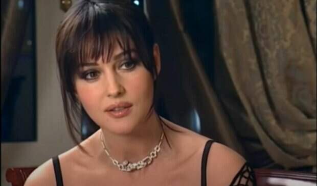 Корсет наряда обтянул пышную грудь, а эффектное декольте притягивало взгляд. Бюст едва ли не выпрыгивал из наряда. Моника с неким кокетством подняла платье, сверкнув бедром и стройной ножкой. Завершили образ актрисы различные аксессуары - красивые украшения и прозрачные перчатки. Модель улыбалась, прикрыв глаза. Пышная прическа прибавила ее образу немного изысканности. "Всем удачных выходных