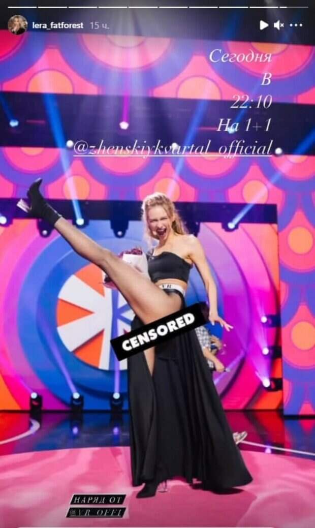 В новом эфире же перед концертом «Женского квартала» Лера не стала скромничать. Девушка продемонстрировала свои таланты во всей красе – просто задрала ногу вверх до самой головы, задирая свой сценичный костюм с неприличным вырезом на бедре. Из-за того, что надеть под такой наряд пришлось довольно незметное белье, кадр получился довольно откровенным. Момент с поднятой ногой и задравшейся нижней частью костюма, как раз и попал на камеру. Ради большей интриги Лере пришлось зацензурить фото и прикрыть обнаженные ягодицы специальным смайликом. Как можно заметить на фото, представленном на странице «Квартала», во время выступления Товстолес также отличилась, а ее формы привлекли внимание к себе. Также ранее звезда покзаала, как худеет в зале ради идеальной фигуры. На фото Лера позировала в шортиках и топе, стоя перед зеркалом в спортзале. Образ Товстолес дополнила стильными кроссовками, под которые надела носочки белого цвета. На втором фото Лера уже приседала, демонстрируя идеальные ягодицы, так как развернулась спиной. А на послежних кадрах Товстолес показала совместные занятие с молодым человеком. "Круто как", "Огонь", "Люблю, ого!", "Прогресс есть!", - отметили восхищенные фанаты. Напомним, блондинка из "Женского квартала" в соблазнительном мини "оседлала" горячую шатенку А еще Politeka писала, что блондинка из "Женского квартала" в прозрачном платье восхитила роскошными изгибами Также Politeka сообщала, что Бесстыжая блондинка из "Женского квартала" пошалила в ванной и сняла все на видео
