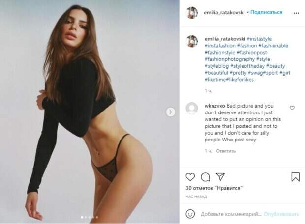 По словам Ратаковски, она просто любит свое тело, принимает его и очень заботится о нем, чувствуя его желания. Как можно заметить на фото, Эмили уверенно чувствует себя перед камерой, с удовольствием подчеркивает свои достоинства при помощи довольно открытых поз перед объективом и не смущается демонстрировать белье, сделанной из сетчатой ткани. В черном комплекте и со спущенными штанами Ратаковски вполне уверенно чувствовала себя, хвастаясь видом. Базовые очищающие средства, сыворотка с ретинолом и масло с розой – вот основа ухода за кожей модели. Ради такого достойного вида, звезда очень старается поддерживать упругость ее кожи, она постоянно пользуется скрабами, ходит в сауны и на тайский массаж. Также Ратаковски не может жить без гидрогелевых масок для лица. Отметиим, после рождения ребенка Ратаковски еще ни разу не показывала фигуру, посвящая свое время семье и самой себе. И только недавно девушка поделилась постом магазина, ради которого не только засветилась впервые после родов, но еще и распахнула пижаму, чтобы показать тело во всей красе. «Это было записано до беременности? что ?? !!! Мне нужно знать; нимфа приплыла; черт возьми, Эмили, хорошая работа! Цели
