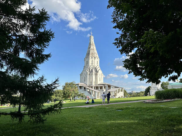 Оно было любимой резиденцией царя Алексея Михайловича, построившего здесь в 1667–1668 годах дворец на невиданные для тех времен 260 помещений. Простоял он почти сто лет, после чего был разобран по указу Екатерины II. Симеон Полоцкий, основоположник русского искусствоведения, называл дворец «восьмым чудом света». В 1923 году в Коломенском был основан музей, открывший новую страницу в истории этих мест. Музей был создан по инициативе архитектора и реставратора Петра Барановского — одного из главных «спасителей» русской (особенно храмовой) архитектуры в раннесоветский период ее тотального забытья. Труды Барановского не прошли даром. Рожденный, поставленный на ноги и воспитанный Петром Дмитриевичем музей-заповедник Коломенское в этом году отмечает столетний юбилей. Длина маршрута — 8,4 км или 12 тыс. шагов. Начнем прогулку с осмотра (1) мельницы, находящейся на реке Жуже. Построена в начале 2000-х. Река Жужа, как и мельница, здесь тоже бутафорская — она искусственно наполняется из Москвы-реки. Водяная мельница на реке Жуже. Фото: К. Спасский По соседству расположен (2) Голландский домик Петра I — полноразмерный (экстерьерно и интерьерно) макет оригинального домика, расположенного в Заандаме. Был подарен правительством Нидерландов в 2013 году, возведен силами 101-го инженерного батальона города Везепа вооруженных сил Королевства. Голландский домик Петра I. Фото: К. Спасский Среди исторических оригиналов и реплик можно найти интересный инженерный артефакт: (3) слип — наклонная береговая площадка для спуска судов со стапеля на воду или подъема из воды. Является отголоском нахождения здесь паромной переправы. Слип. Фото: К. Спасский (4) Музей деревянного зодчества в Коломенском находится под открытым небом и состоит из таких объектов, как башня Братского острога, проездные ворота Николо-Корельского монастыря, Моховая башня Сумского острога. Все строения относятся к концу XVII века и были перевезены в Коломенское в 1930-х годах. В XXI веке были реконструированы и открыты для показа. Музей деревянного зодчества. Фото: К. Спасский Особняком стоит (5) деревянный Храм Георгия Победоносца, который изначально был построен в 1685 году на берегу реки Ёрги, правого притока Северной Двины. В дальнейшем неоднократно перестраивался. В 2003 году по инициативе художника Ильи Глазунова началась разработка плана разборки и доставки полуразрушенной к тому времени церкви для реставрации и возведения в Коломенском. В начале 2010-х годов храм в современном виде появился на новом для себя месте. Георгиевская церковь. Фото: К. Спасский Далее пройдем до (6) сэргэ — памятных деревянных колонн, первая версия которых была установлена 16 июня 2007 года в честь 375-летия вхождения Республики Саха (Якутия) в состав Российского государства. В сентябре 2007 года на берегу реки Лены в ответ был открыт памятник сибирскому исследователю Петру Бекетову. Совсем недавно сэргэ были обновлены. Сэргэ. Фото: sakhalife.ru (7) Храм Вознесения Господня в Коломенском возведен (по одной из легенд) в 1528–1532 годах, в честь рождения будущего первого русского царя Ивана IV Грозного. В период строительства был самым высоким зданием Москвы — 62 метра. Храм не претерпел существенных изменений, включен в список всемирного наследия ЮНЕСКО. Церковь Вознесения Господня. Фото: К. Спасский Расположенная рядом (8) Водовозная башня была