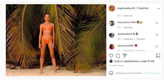Об этом пишет Politeka.net со ссылкой на страничку знаменитости. "Мое счастливое место ... Где джунгли встречаются с пляжем Где твое счастливое место?", - написала звезда. Фанаты поставили более 150 тысяч лайков и написали комментарии: "Люблю тебя", "привет богиня соблазнительная Кэндис !!!", "Моя королева", "Я люблю Кэндис", "Цели тела", "Как бы я хотел потерпеть кораблекрушение на острове с тобой", "Я люблю тебя, ангел", "Это потрясающе. Мое счастливое место всегда у воды", "Когда сделаешь это однажды, выпей кофе со мной", "Где счастье, вот место ...", "Мне нравится этот цвет на тебе, Кэндис, это твой любимый цвет? :)". Мы писали, что американская модель Кэндис Свэйнпол из Victoria’s Secret впечатлила фигурой, примеряв одно лишь боди. Уточним, что на фотографии Свэйнпол позирует в одном боди, эффектно нагнувшись в кадр. Благодаря этому в кадр попали изящные изгибы красотки, на что обратили внимание ее поклонники. Напомним, звезда "Victoria’s Secret" Кэндис Свейнпол задрала ноги выше головы, восхищая растяжкой А еще Politeka писала, что растрепанная звезда "Victoria’s Secret" Кэндис Свейнпол примерила узкое платье Также Politeka сообщала, что звезда Victoria’s Secret Кэндис Свейнпол с горячей подружкой порезвились на пляже