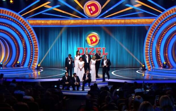 Актеры "Дизель Шоу" Егор Крутоголов, Евгений Сморигин и Яна Глущенко вышли на сцену, изобразив спонсора, звукорежиссера и недалекую блондинку с большими губами соответственно. (Чтобы посмотреть видео, доскролльте до конца страницы). На кадрах спонсор привел девушку с целью записать песню, однако, судя по всему, петь она не умеет.